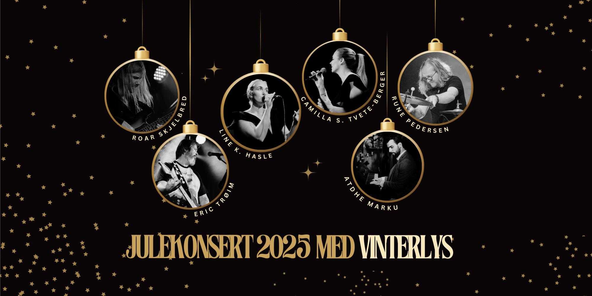 Velkommen til en helt spesiell julekonsert der tradisjon møter rytme, og høytidens varme får et pulserende løft! Vinterlys er en sekstett med hjerte for både det nære og det levende – Du inviteres inn i en musikalsk vinternatt fylt med tradisjonelle vakre norske juleskatter, groovende julerytmer, rytmiske overraskelser og ekte julestemning.Dette er konserten for deg som vil både senke skuldrene og la føttene vippe i takt med bjelleklang. Vi lover gåsehud, glede og gjenklang i hjertet – i toner, lys og fellesskap.La oss skape varme og lys i mørket, sammen. Vinterlys består av: Camilla Stensrud Tvete-Berger på sang, Line Klaastad Hasle på sang, Atdhe Marku på Piano og trekkspill, Roar Skjelbred på Bass, Eric Trøim på gitar og sang & Rune Erling Pedersen på Trommer og sang.