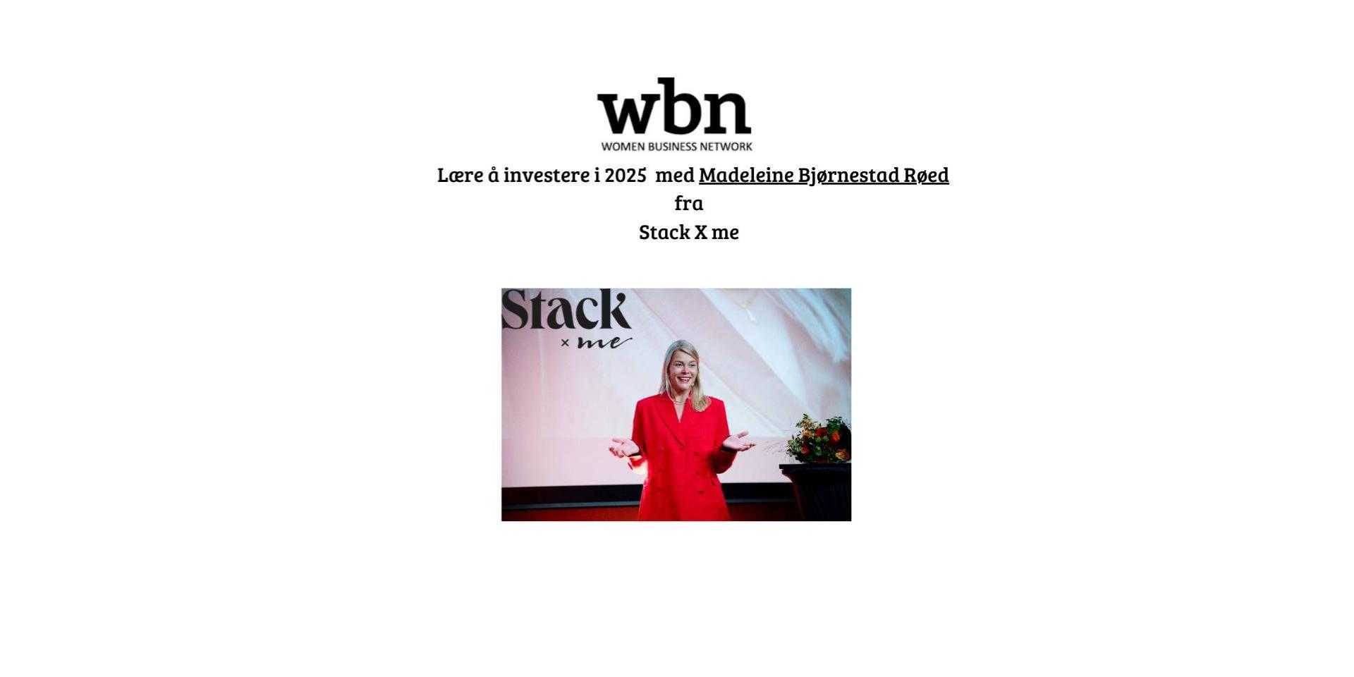 Women Business Network (WBN) inviterer deg til et inspirerende arrangement om investering, ledet av Madeleine Bjørnestad Røed fra Stack X Me. Dette er en unik sjanse til å lære hvordan du kan komme i gang med investeringer og forstå hvorfor det er så viktig – alt i en hyggelig og motiverende setting.