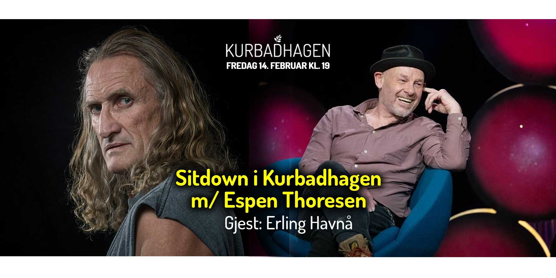 Sitdown i Kurbadhagen er en ny serie der Espen Thoresen inviterer flere spennende gjester til sceneintervjuer, debatt og samtaler. Vi kommer tett på og får servert unike historier og perspektiv.